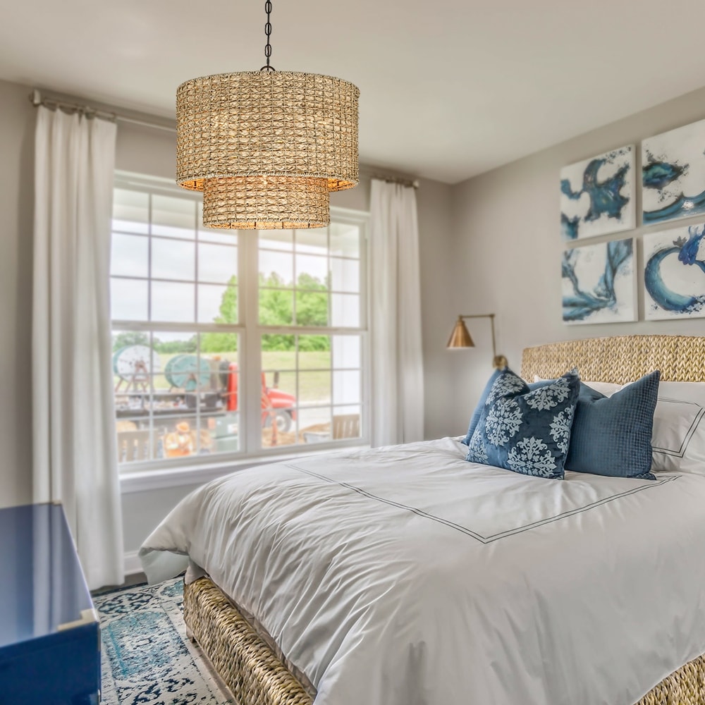 Rien n'apporte autant de chaleur et d'ambiance décontractée qu'un lustre tissé. Cette suspension, méticuleusement tressée à la main en jonc de mer naturel et en rotin, forme un tambour surdimensionné. À l'intérieur, un ensemble de quatre lumières noir mat diffuse une lumière généreuse et crée des jeux d'ombres captivants sur les murs de votre entrée, salle à manger ou chambre. Cette collection s'intègre à une variété de décors bohèmes et s'intègre même aux intérieurs de style bord de mer ou rustique. Elle est idéale au-dessus de votre îlot de cuisine, salon, entrée, ou suspendue au-dessus de votre table de salle à manger ou de votre chambre.