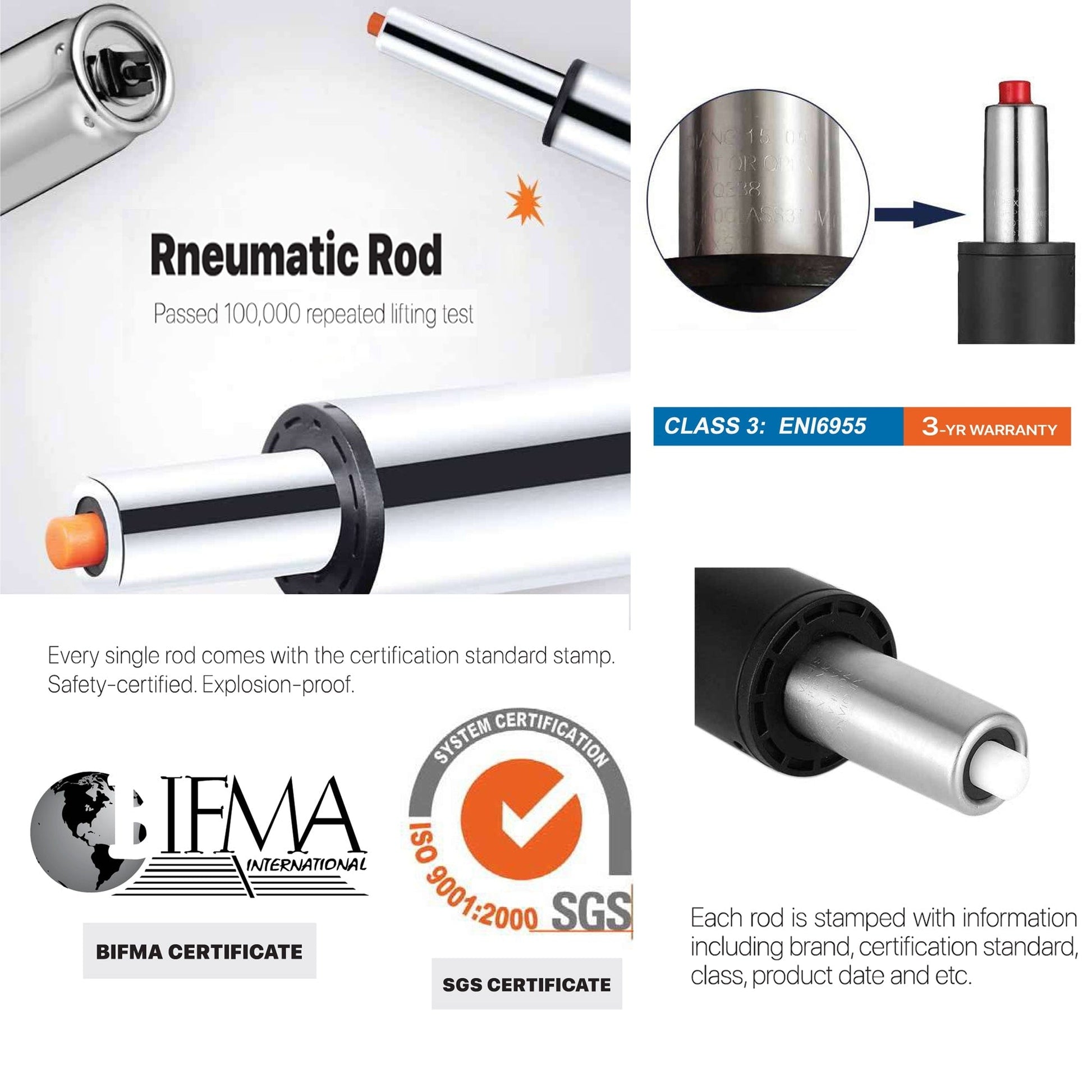 - Le levier de réglage de la hauteur à pression de gaz est conforme à la norme BIFMA de niveau 3