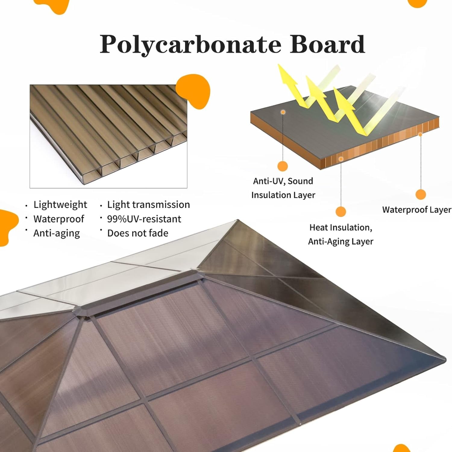 Tonnelle à toit rigide pour jardin – Pergola permanente avec filet, rideaux et double toit, abri extérieur toutes saisons