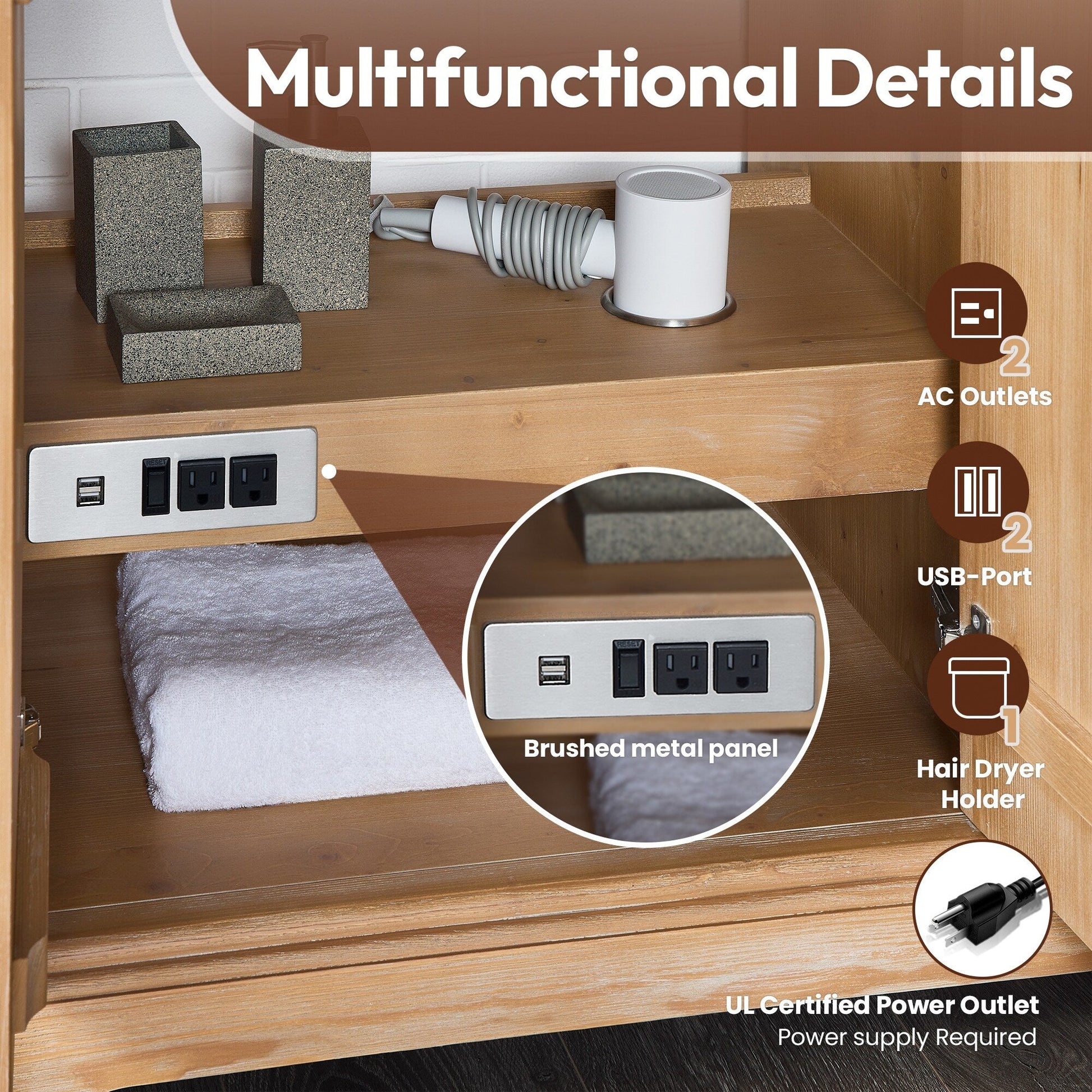 Fonctionnalité pratique : Les prises d'alimentation et USB homologuées UL intégrées permettent d'alimenter facilement vos appareils de beauté et de soins. Un organiseur pratique pour sèche-cheveux est inclus pour garder votre outil préféré à portée de main.
