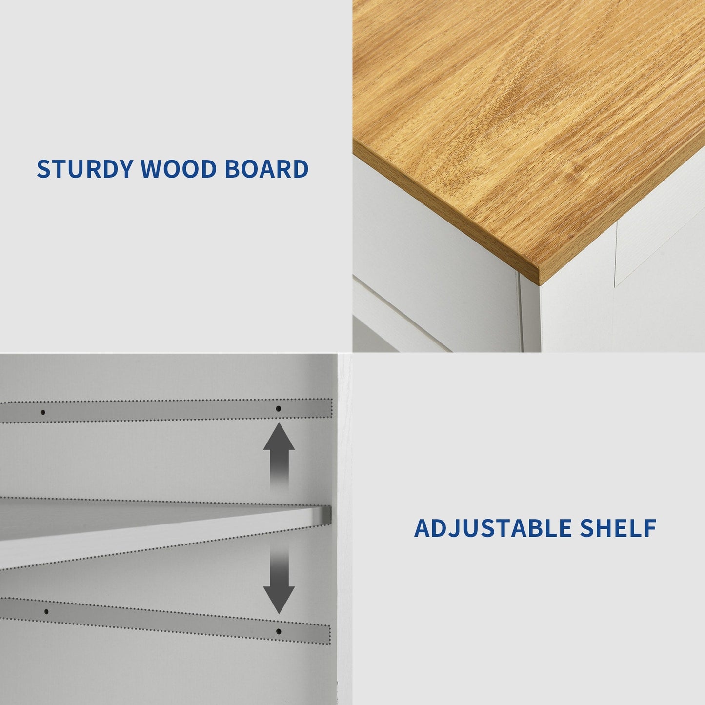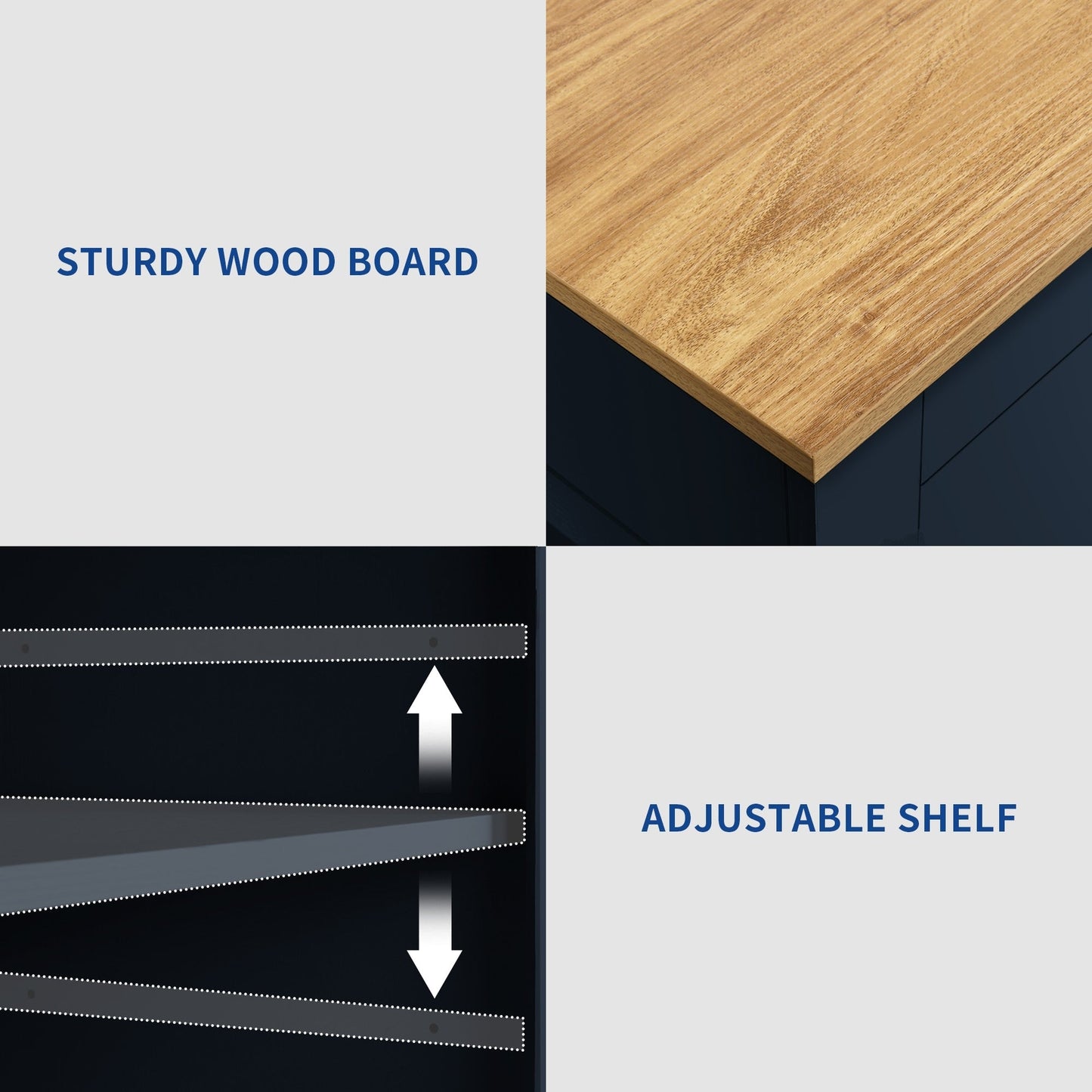 - Comprend 2 tiroirs et 3 étagères pour un rangement organisé de la cuisine.