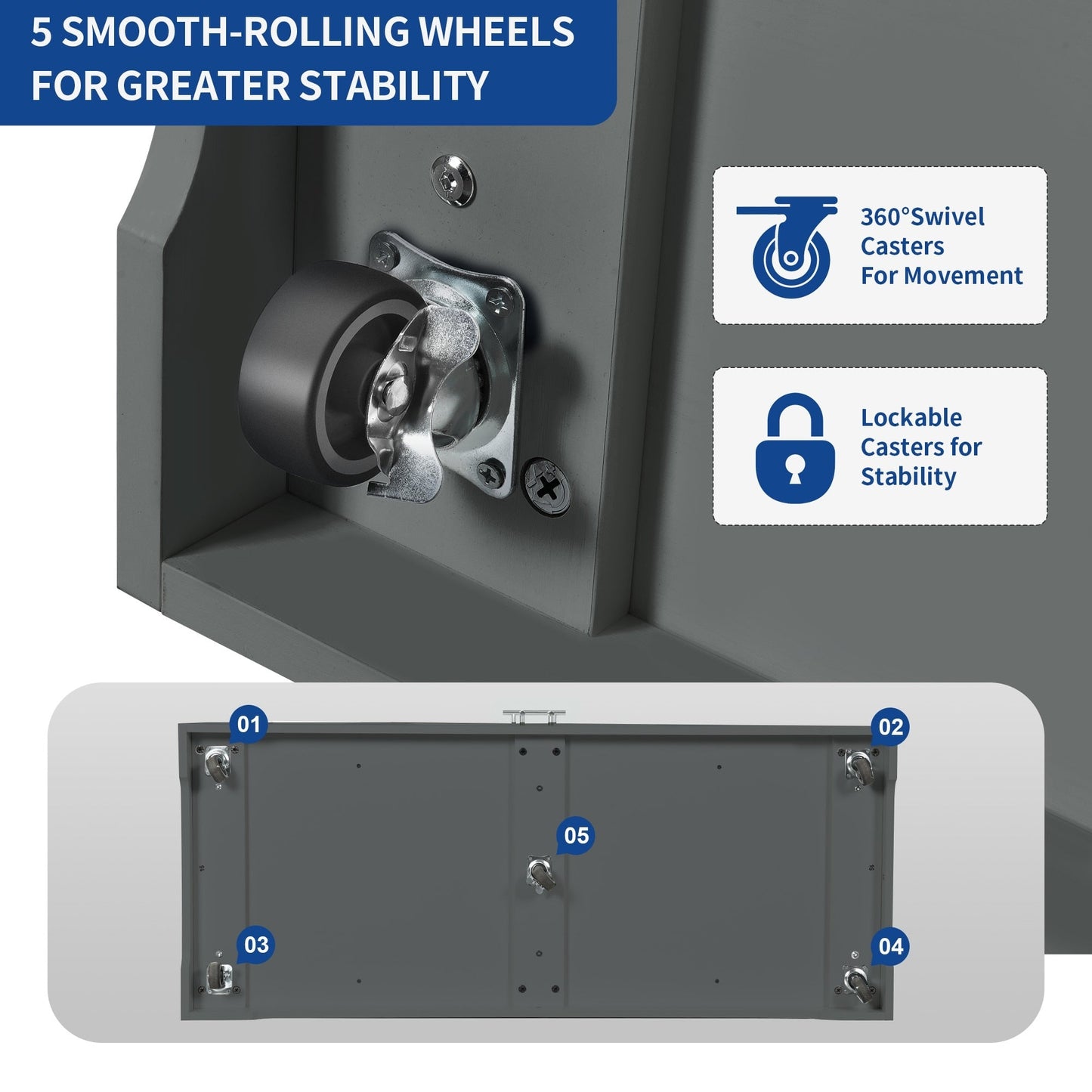 Découvrez notre meuble basculant pour poubelles ! Cet accessoire indispensable à votre îlot central vous permet de garder votre cuisine et votre salle à manger propres et fraîches en rangeant en toute sécurité une poubelle de 40 litres (non incluse) pour éviter les odeurs. Il offre un grand espace de rangement avec deux tiroirs pour les ustensiles, la vaisselle et les fournitures de bureau, ainsi que trois étagères latérales ouvertes pour les épices. L'étagère réglable à l'intérieur du meuble permet de ranger divers ustensiles de cuisine. Ce chariot polyvalent est équipé de roulettes verrouillables pour un déplacement facile et un verrouillage pour la préparation ou le rangement des aliments. Idéal pour les cuisines, les salles à manger et les restaurants, ce meuble est fabriqué en panneaux MDF certifiés CARB phase II. Le montage est simple et les instructions sont claires.