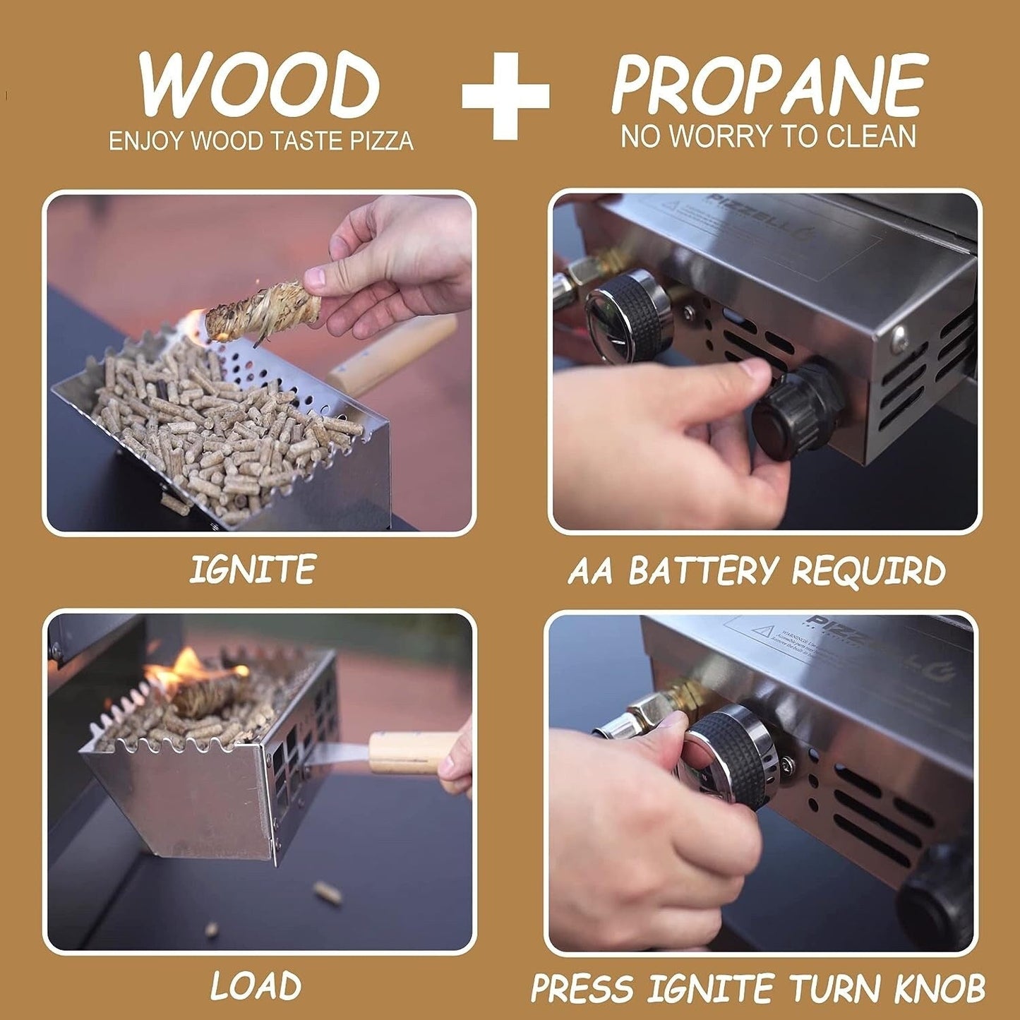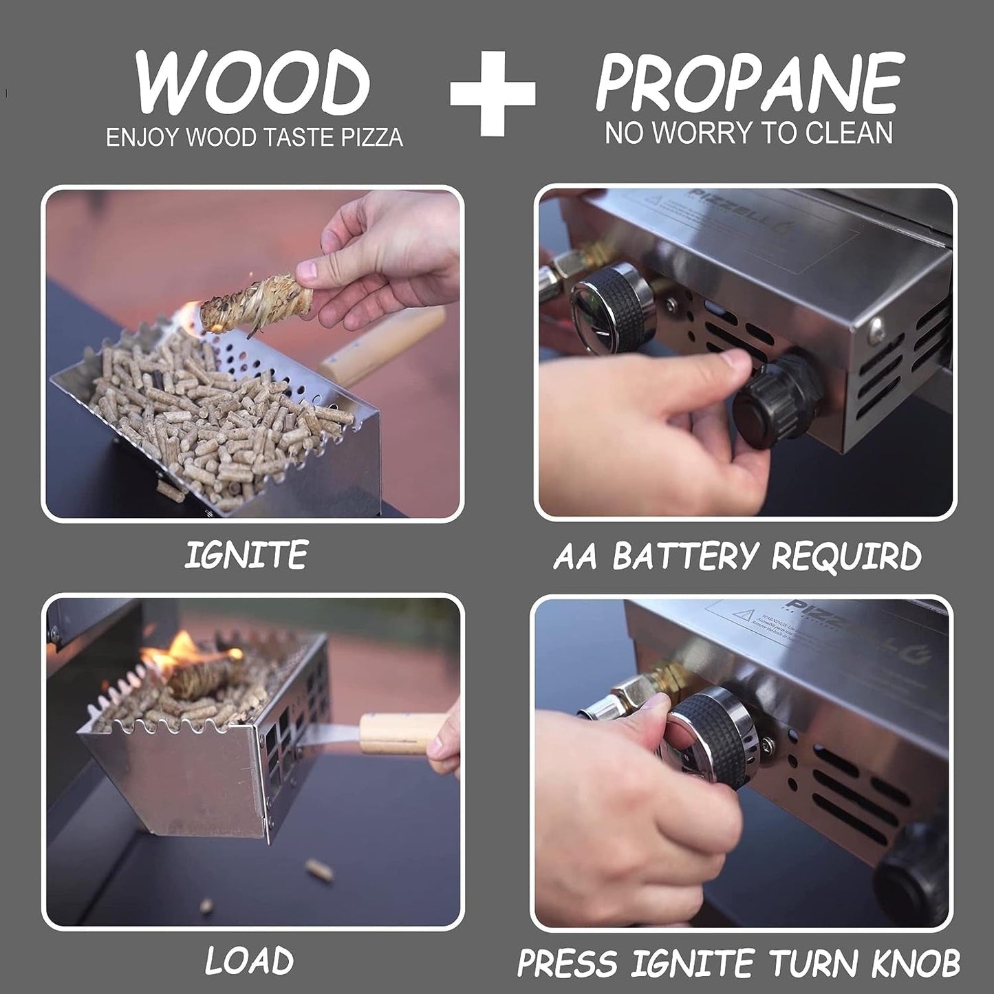 Four à pizza extérieur multi-combustible, machine à pizza cuite sur pierre avec brûleur à gaz et boîte à bois - 12 pouces