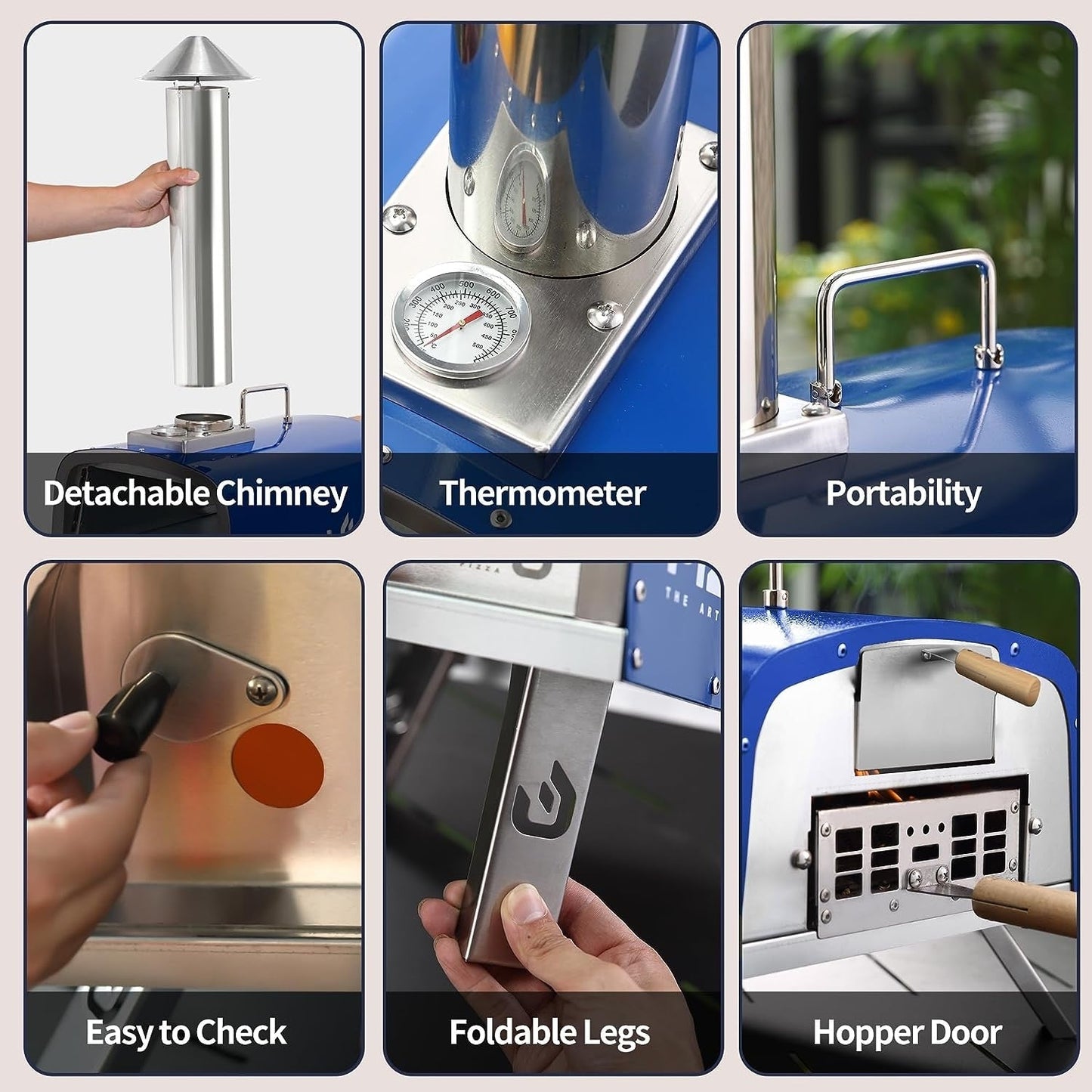Notre four à pizza à granulés de bois de 4,8 m est conçu pour une polyvalence et une praticité exceptionnelles. Compatible avec les granulés de bois, ce four à pizza d'extérieur atteint rapidement la température de 400 °C en seulement 20 à 25 minutes, idéal pour une cuisson parfaite en 60 secondes. Sa conception portable est dotée d'une poignée et de pieds pliables pour un transport facile, ainsi que d'un thermomètre intégré pour un contrôle précis de la température. Grâce à ses doubles parois et à son revêtement intérieur en acier inoxydable, ce four à pizza portable conserve la chaleur et se nettoie facilement. Au-delà des pizzas, il répond à divers besoins culinaires.