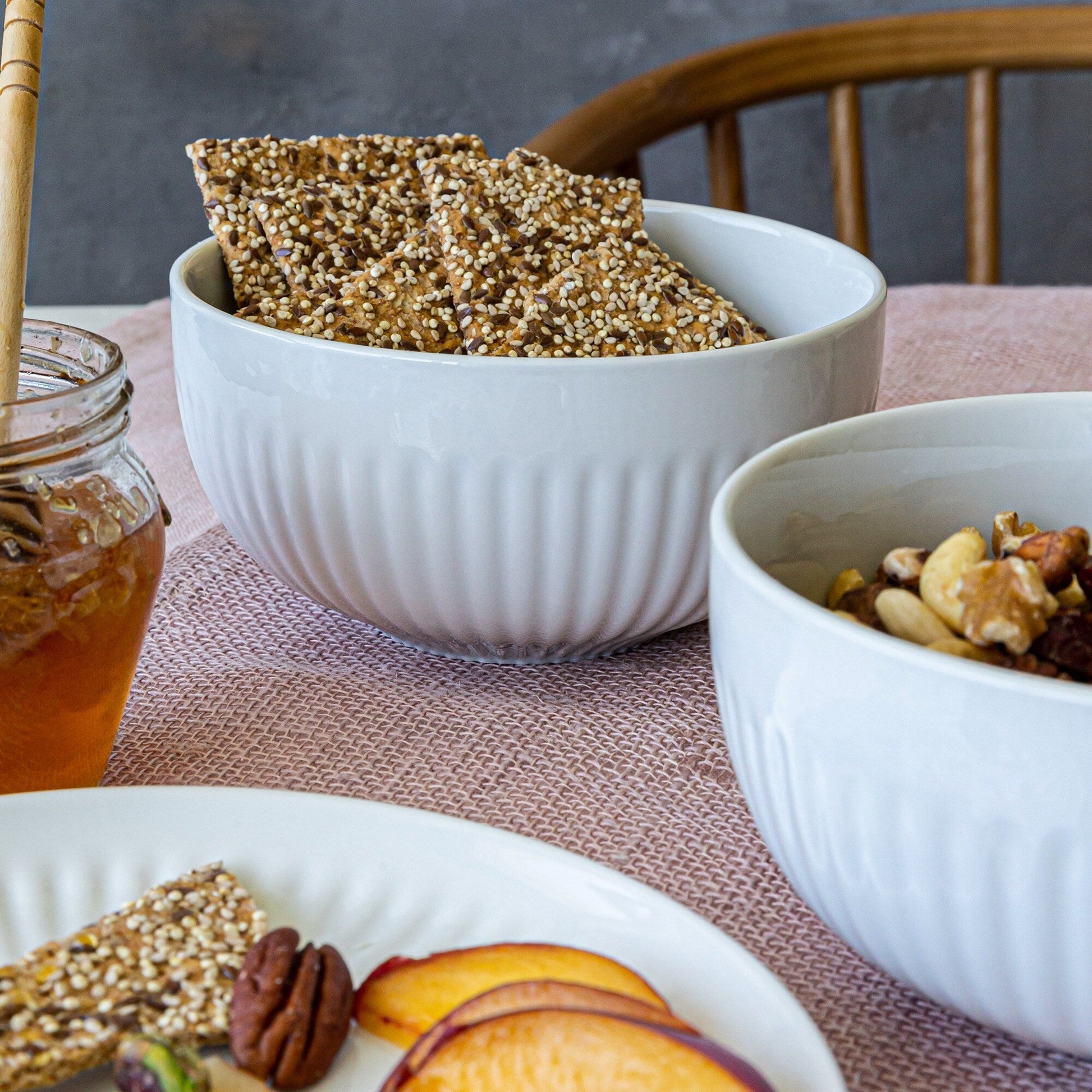 Service de table cannelé en porcelaine blanche Over and Back, 24 pièces