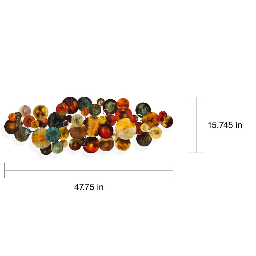 Illuminez votre décoration avec cette sculpture brillante, réalisée en tôle et peinte à la main avec un vernis réfléchissant. Des cercles superposés, disposés sur des tubes métalliques et peints de teintes multicolores, lui confèrent un style contemporain unique.