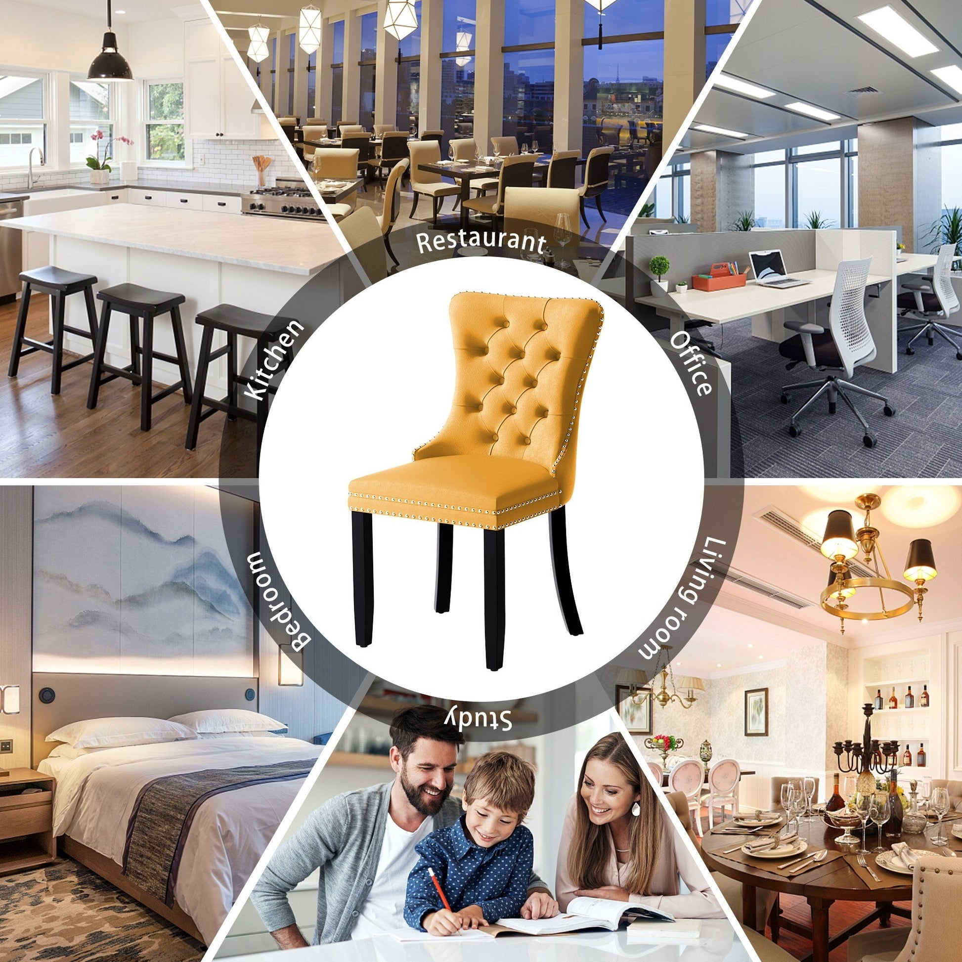 Ces chaises de salle à manger à oreilles sont fabriquées en velours de haute qualité, très résistant à l'usure et à la décoloration. Épais et luxueux, ce tissu offre un toucher délicat. Cet ensemble de chaises en velours arbore un style Mid-Century très moderne. Son dossier haut offre un soutien confortable et solide. De nombreux rivets décoratifs ornent le coussin et le dossier, lui conférant noblesse et élégance, tout en lui conférant une sensation de luxe raffiné. Nous fournissons des instructions et des vidéos de montage. Pour toute question, n'hésitez pas à nous contacter.